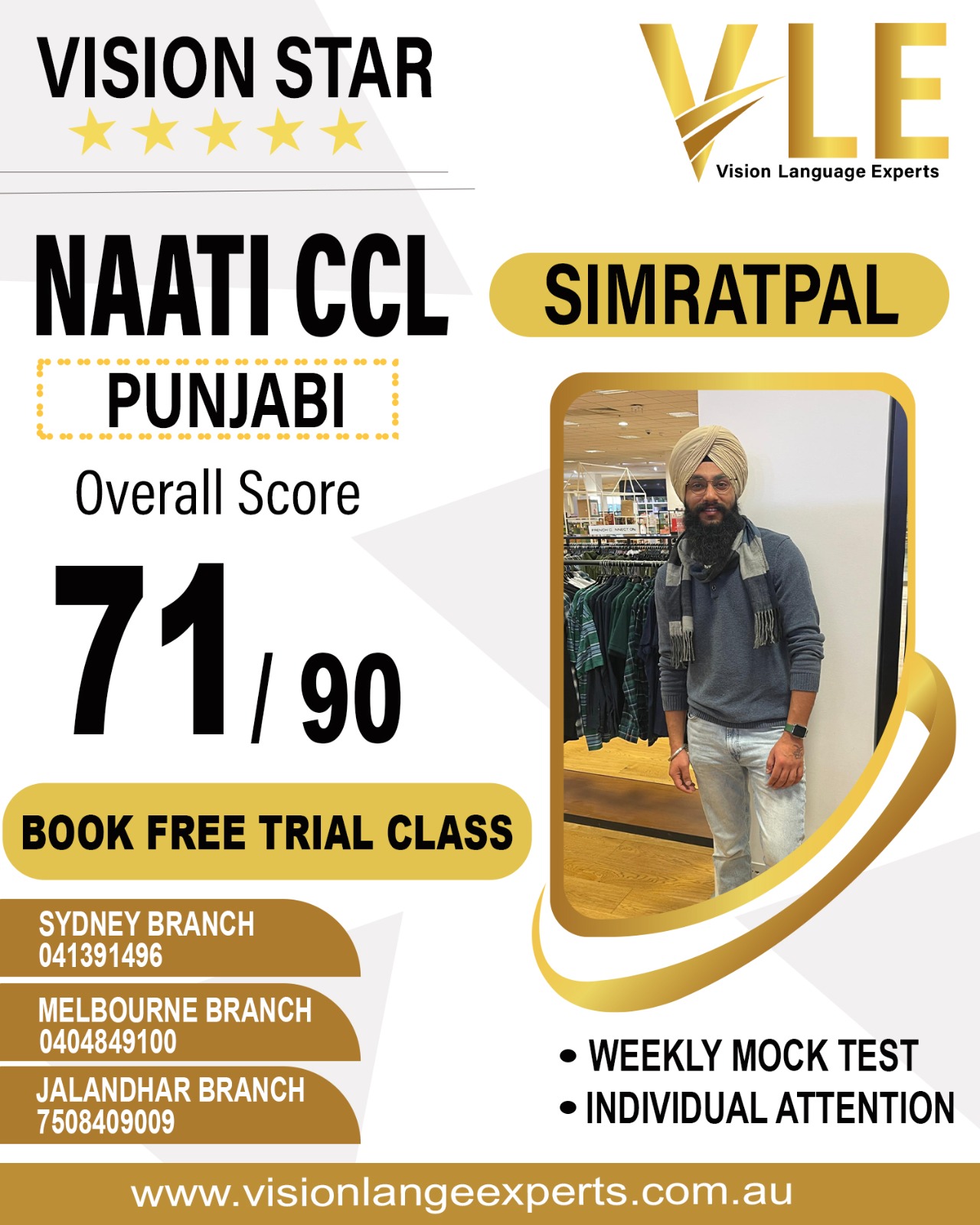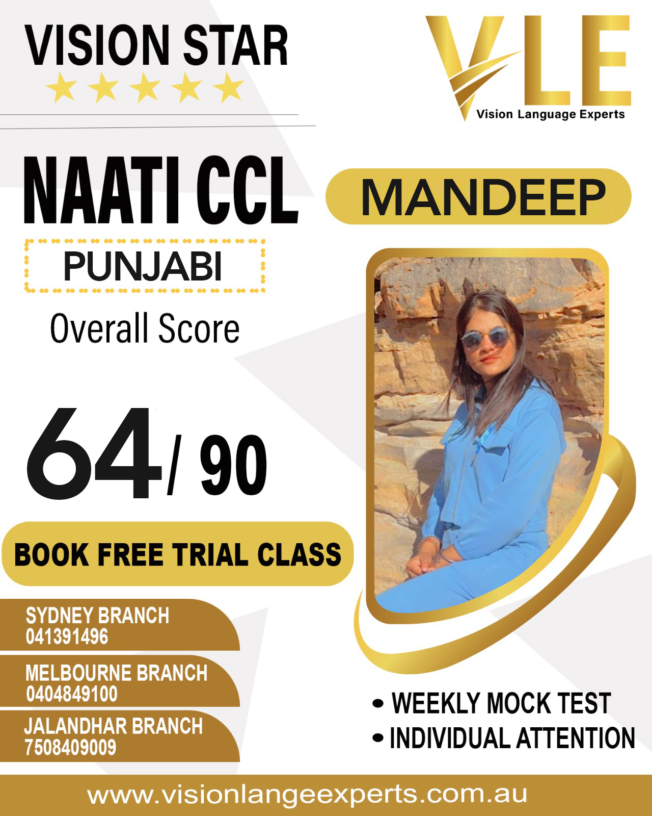 Buy NAATI CCL Mock Test from Vision Language Experts today! Our NAATI Mock Tests are available in different packages. The price range varies as per the requirements. Connect with us to enquire and buy NAATI Mock Test today!