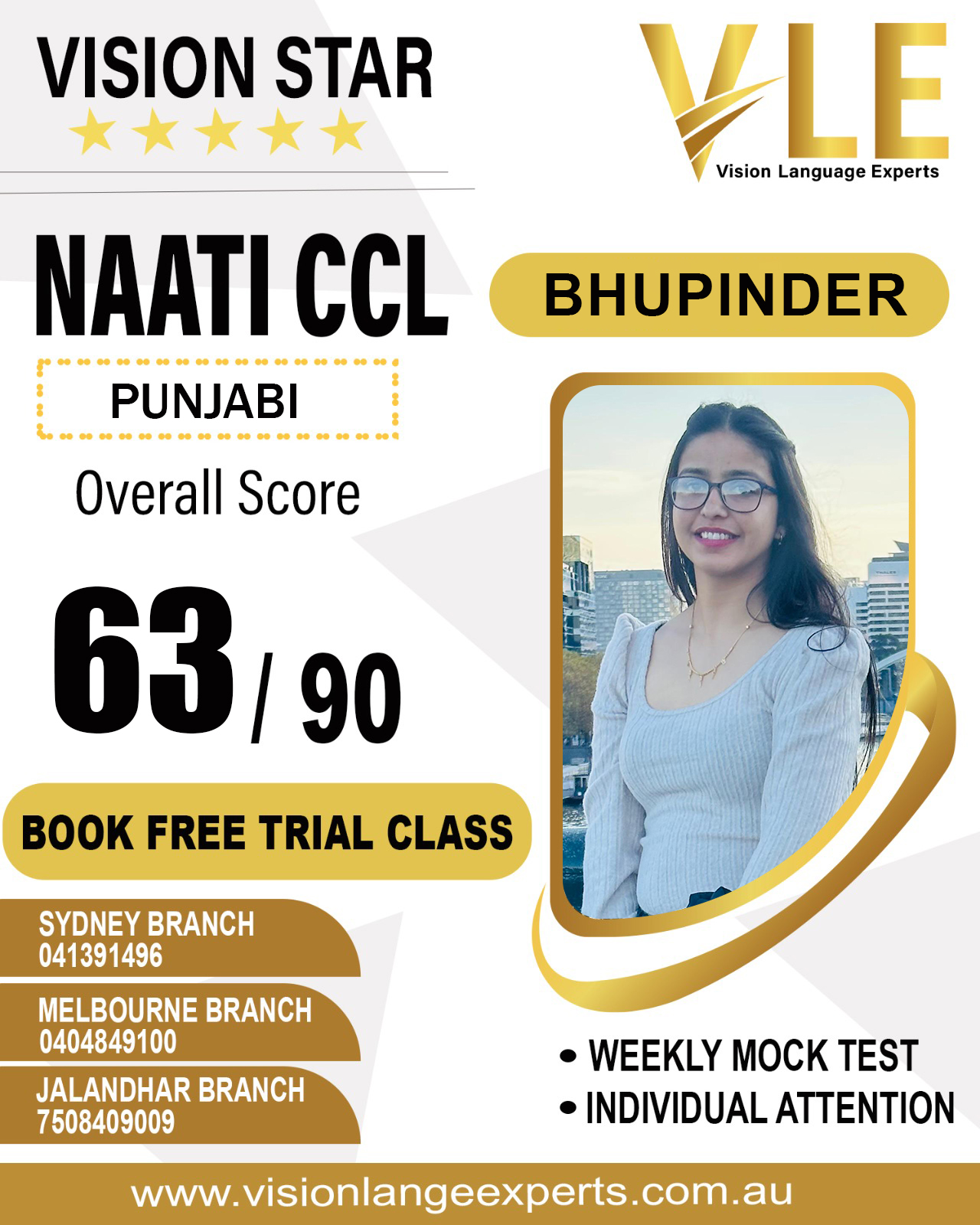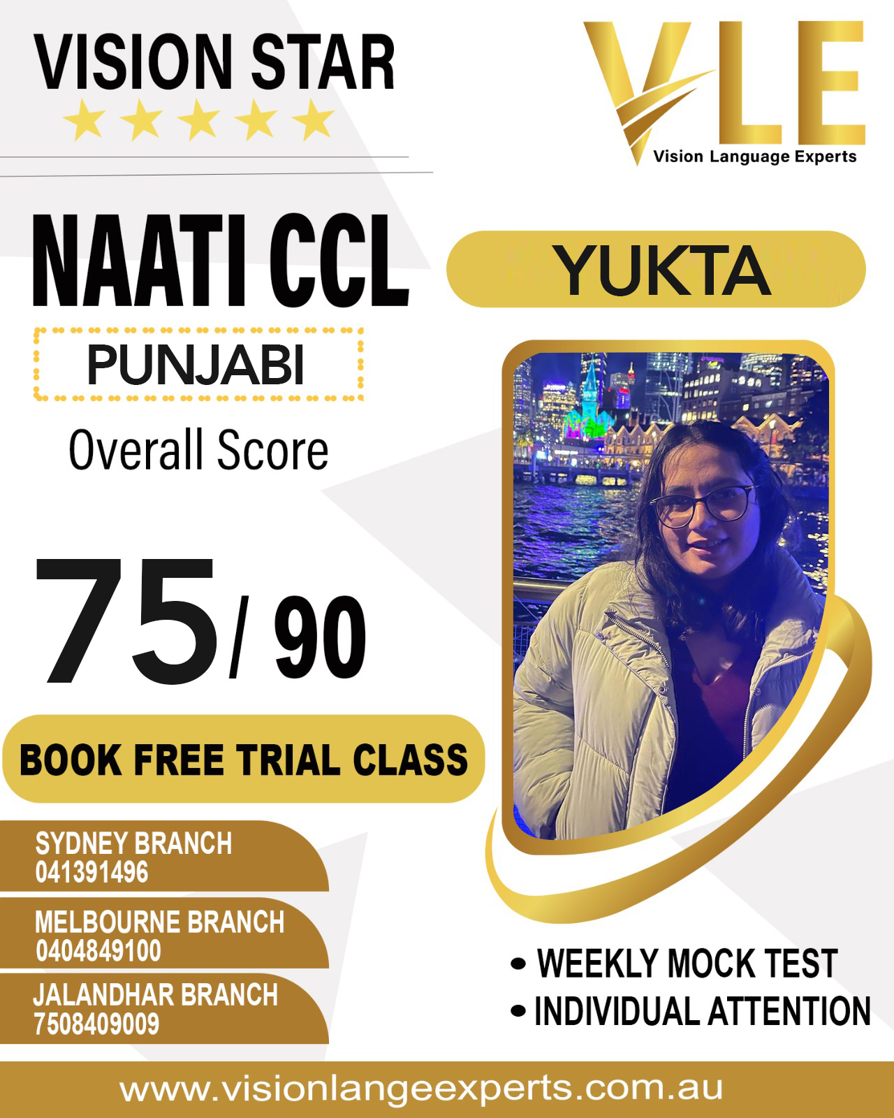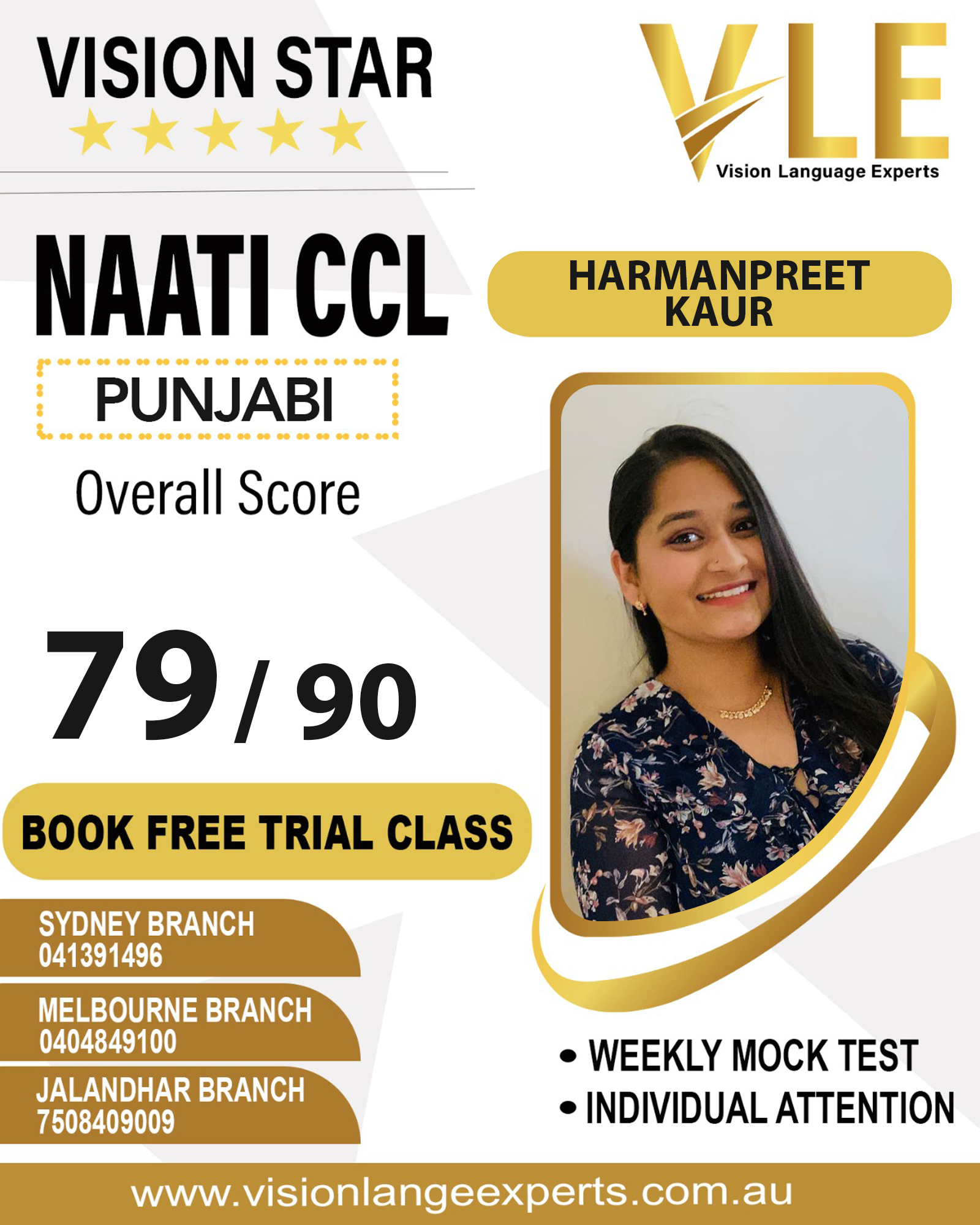 In case you are concerned about your mock test result, you can also book a free consultation and our in-house NAATI CCL instructors will reach out and discuss your strengths and weak areas..